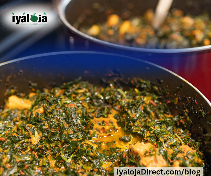 If your soup can take it, add in some fresh vegetables like spinach, ugu, or oleo depending on the type of soup. Vegetables not only balance out the salt but also make your meal richer and healthier..